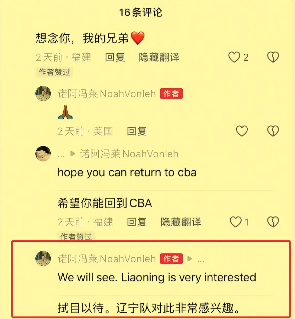 非常有意思的是,前上海队大外援冯莱,却在回复网友时直接碰瓷辽篮,说自己还想回CBA联赛效力,并且已经有球队向他抛出了橄榄枝,那就顶流球队辽篮。